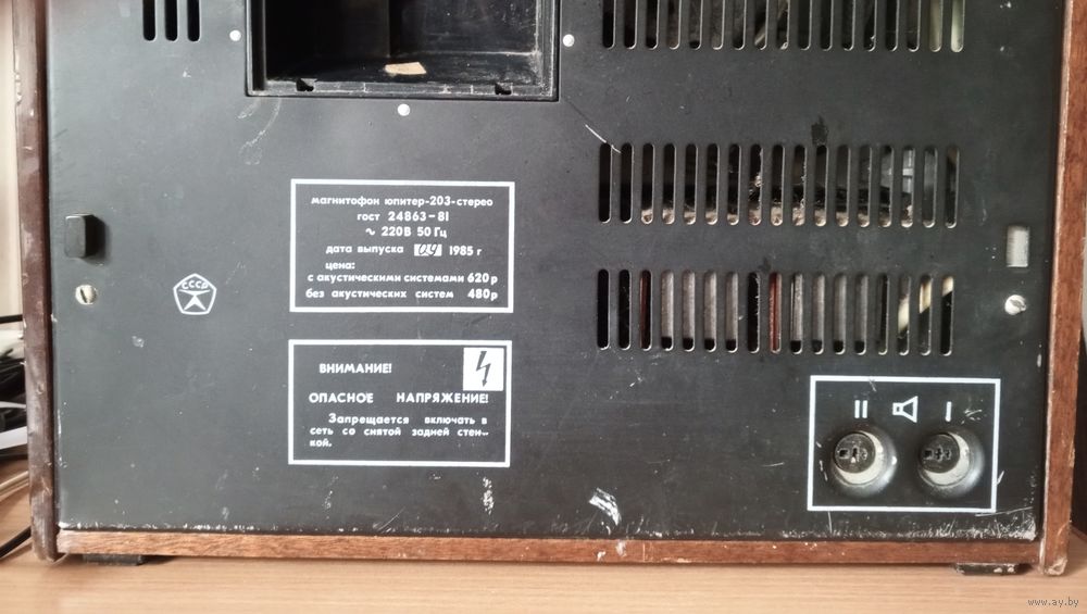 Состояние на фото. Включается, двигатель крутится; воспроизведение идёт, но звук слабый; перемотка работает; иногда внутри раздается звон при остановке или после перемотки.