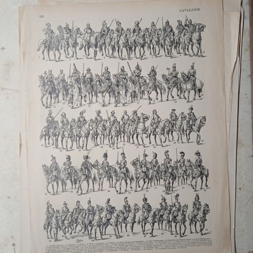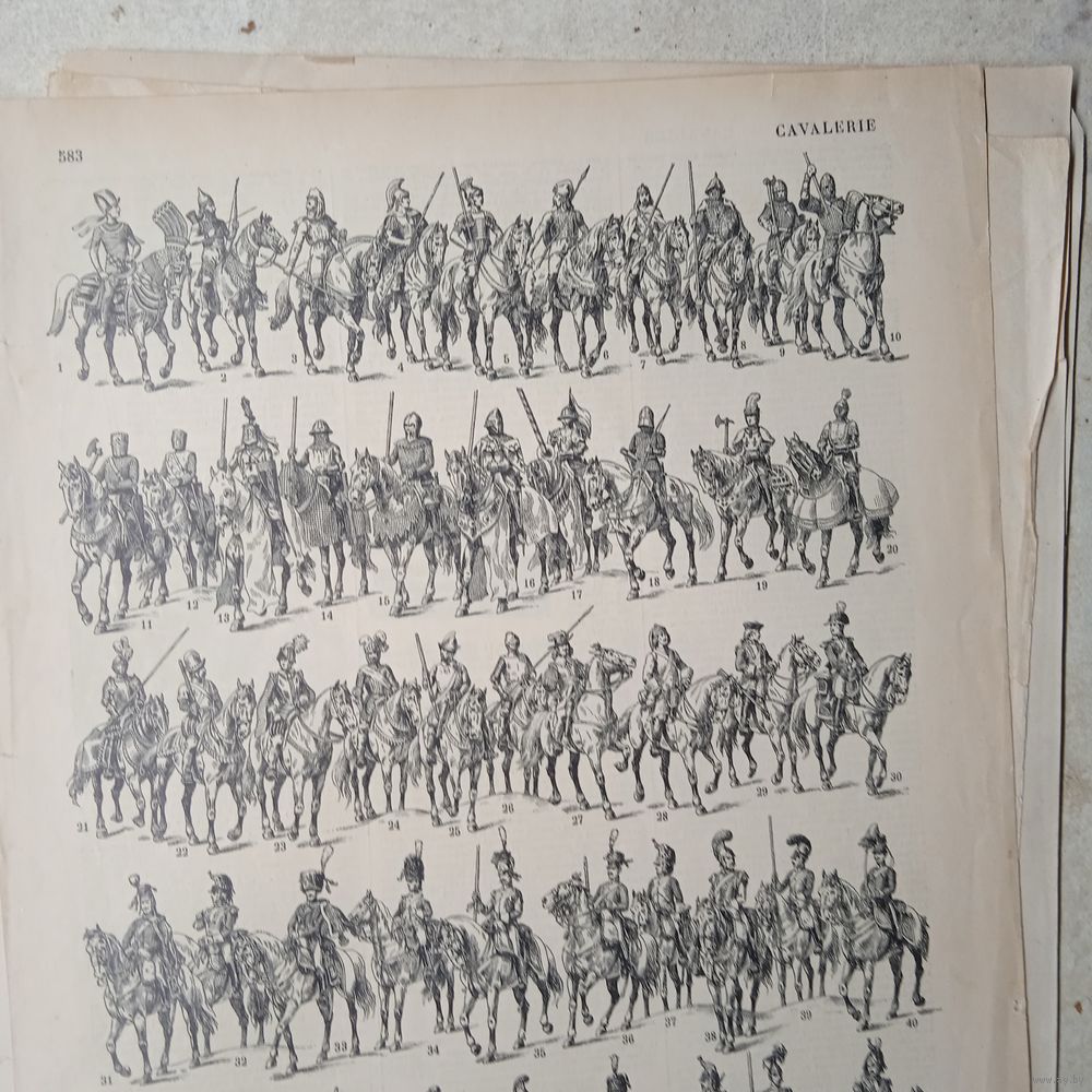 КАВАЛЕРИЯ. Энциклопедическая гравюра. кон.19в. 31х24см. Франция .
