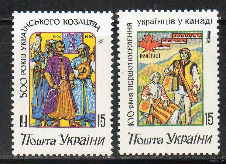 Казачество 500 лет Канада Украина 1992 год чистая серия из 2-х марок 100-летие первого поселения украинцев в в Канаде. **