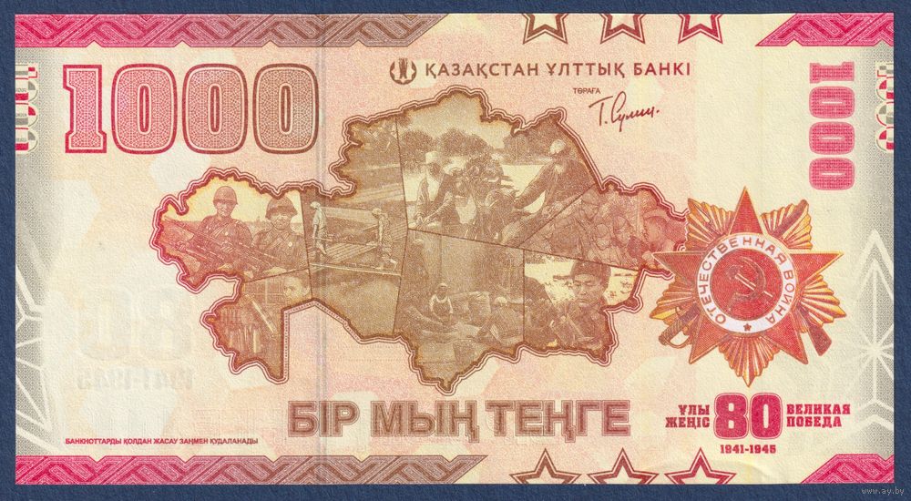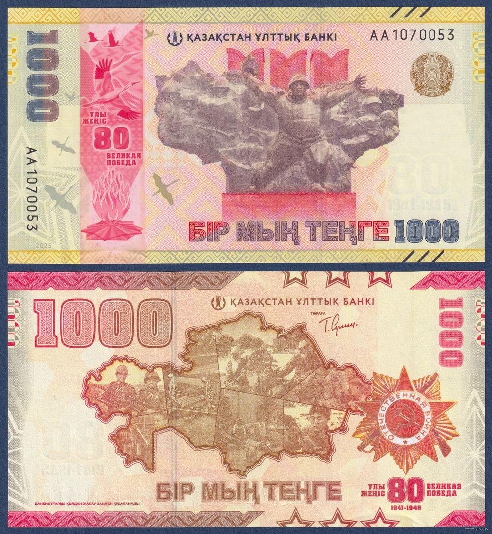 Казахстан, 1000 тенге 2025 г., P-W57 (AA, памятная - 80 лет победы в Великой Отечественной Войне), UNC