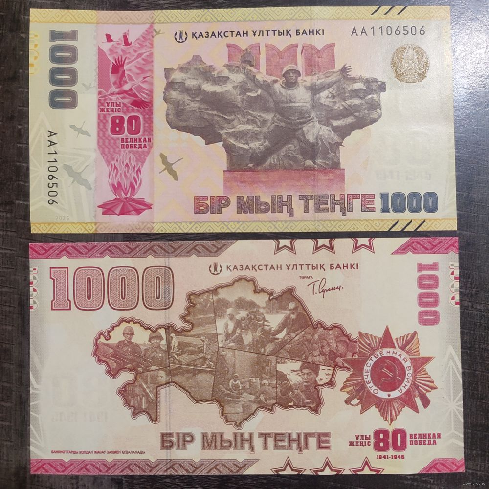 Казахстан 1000 тенге 2025 год. "80 лет Победы"