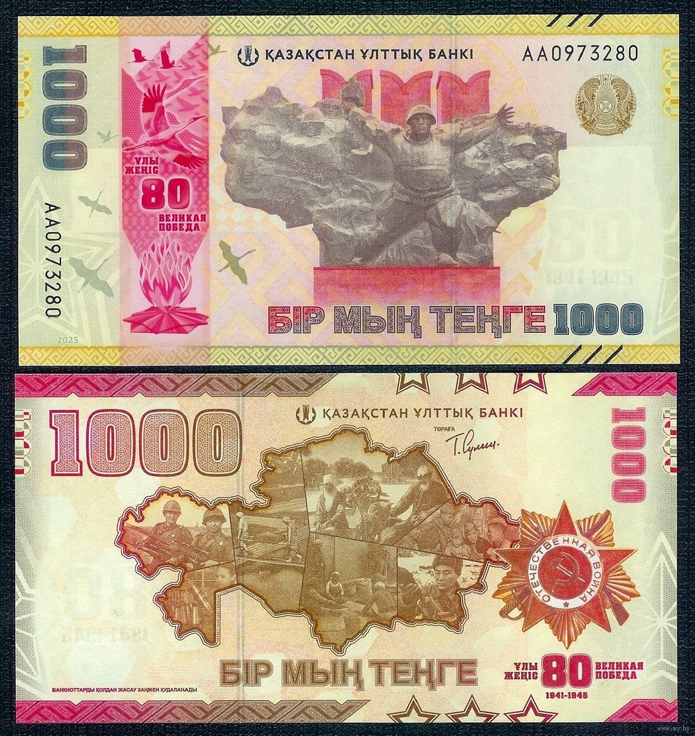 Казахстан 1000 тенге 2025 год, UNC. "Памятная 80 лет Победы"