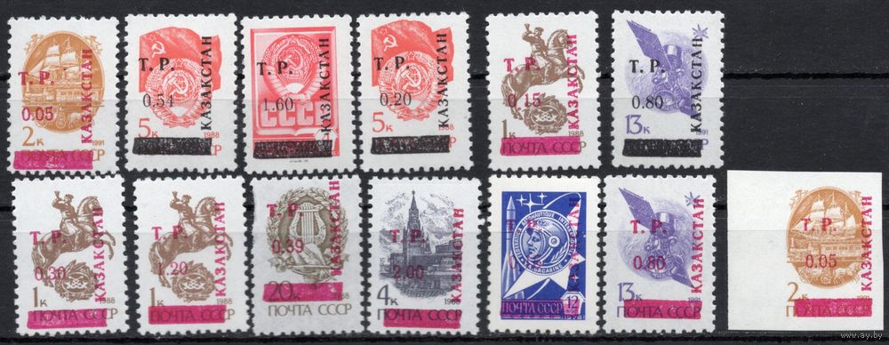 Казахстан 1992. Надпечатки на стандарте СССР. Локальный выпуск. Джезказган. 13 марок (L2)