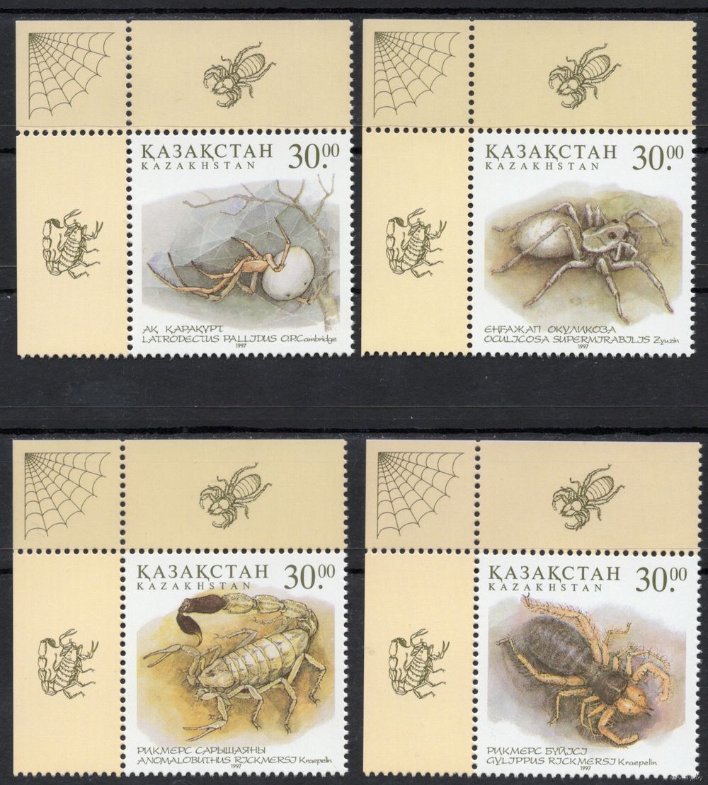 Казахстан 1997. Фауна. Ядовитые насекомые. Пауки. Скорпион. 4 марки с углом (96)