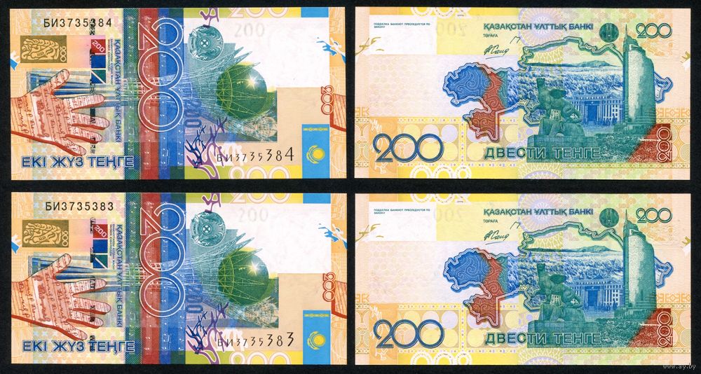 Казахстан 200 тенге 2006 г. (P-28, UNC) [2 шт. Номера подряд. Серия БИ]