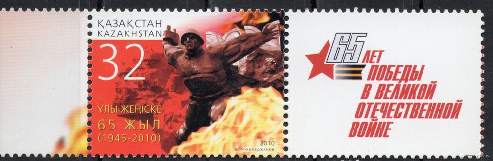 Казахстан 2010. 65 лет Победы в ВОВ. 1 марка+купон (421)