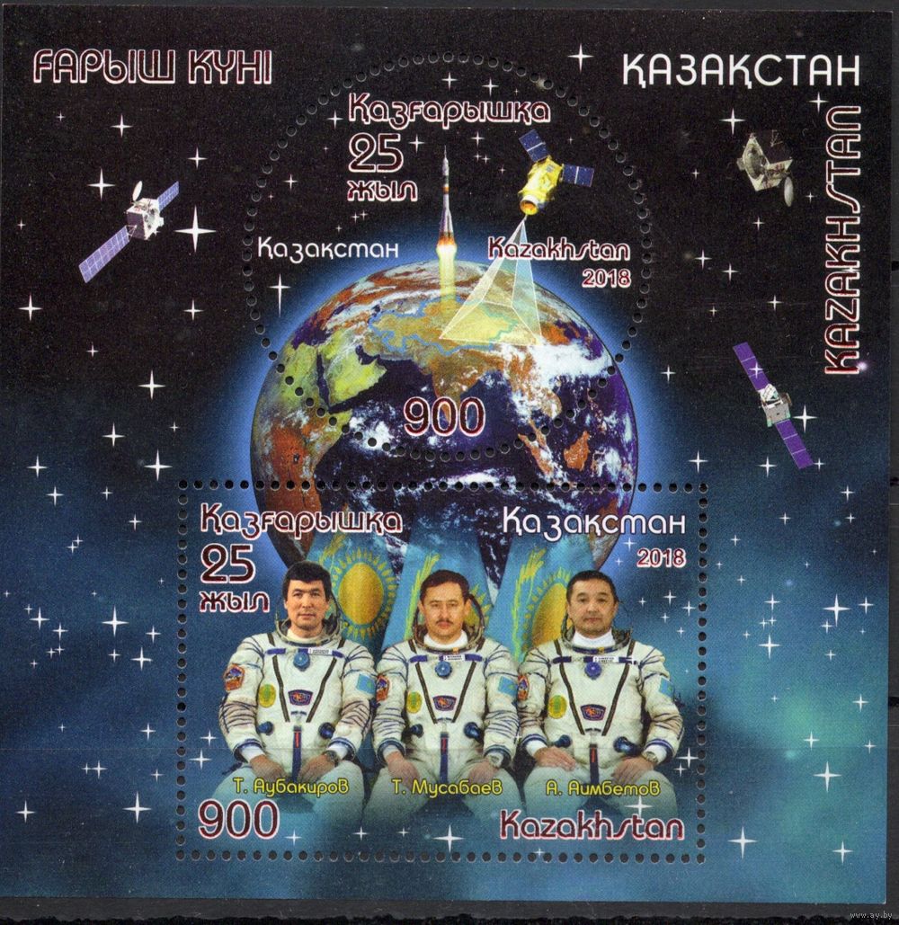 Казахстан 2018. Космос. Казахские космонавты. Спутник. Блок (757)