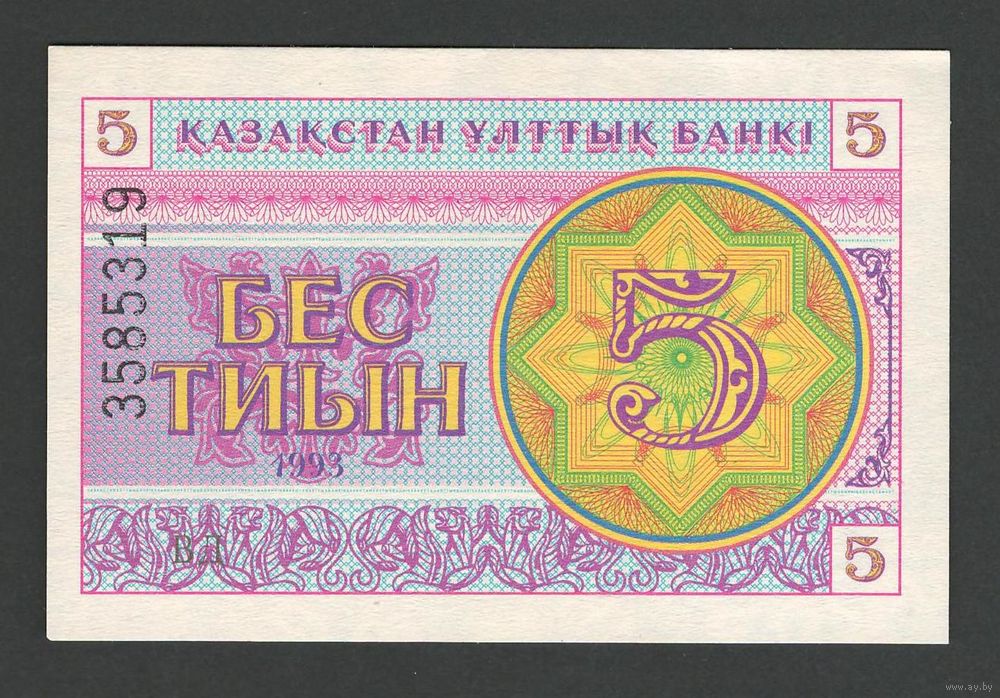 Казахстан 5 тиын 1993 года. Снежинки. Тип P-3b(2). Состояние UNC