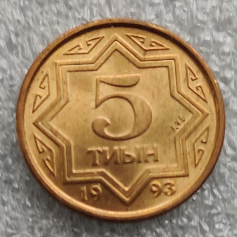 Номер  KM # 2a  Страна  Казахстан  Период  Республика Казахстан (1991 - 2025)  Валюта  Казахстанский тенге  Вид чекана  Регулярный чекан  Номинал  5 тиын  Год  1993  Гурт  Гладкий  Форма  Круг  Отношение авс/рев  Медальное (0°)  Материал  Цинк с медным покрытием  Вес (g)  2,26  Диаметр (mm)  17,27  Толщина (mm)  1,35