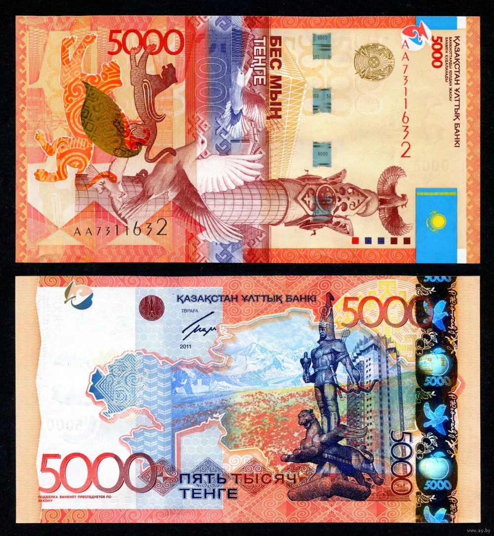 Казахстан 5000 тенге 2011 г. (P-38(1), UNC) [Марченко. Серия АА] Казахстан 5 000 тенге 2011 г.