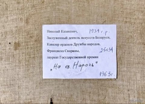 Казакевич Николай Константинович. Белорусский живописец. Родился 5 мая 1934 года в д. Дулебы Березинского района Минской области (Беларусь). В 1955 г. окончил Минское художественное училище, в 1961 - Белорусский государственный театрально-художественный институт. Его учителями были В. К. Цвирко, А. П. Мозолева, В. П. Суховерхова. С 1961 г. являлся участником республиканских, художественных выставок в СССР, Югославии, Чехословакии, Германии, Франции, Польше, Австрии, Венгрии, Болгарии, Финляндии, Шри-Ланке. Николай Константинович – блистательный живописец, которого вдохновляет белорусская земля, белорусский народ. Он пережил трудные военные времена, однако его всегда воодушевляли мир, жизнь, цвет. Художник награжден Почетной грамотой Верховного Совета БССР, бронзовой медалью ВДНХ СССР, орденом Дружбы народов, медалью Белорусского союза художников, в котором Николай Константинович состоит с 1963 года. Николай Казакевич является не только заслуженным деятелем искусств Беларуси, лауреатом Государственной премии Республики Беларусь, но и одним из основоположников гомельской школы живописи.