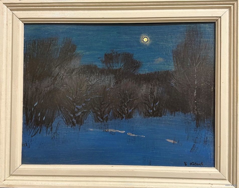 1937 – 2008 Родился в г. Балахна Горьковской (Нижегородской) области, Россия. В 1953 г. поступил в Горьковское (Нижегородское) художественное училище, учился у И.С. Мясникова, окончил в 1958 г. с отличием. В 1958 г. поступил в Белорусский государственный театрально-художественный институт на отделение театральной декорации. Учился у великолепных художников и педагогов О.П. Марикса и Е.Г. Чемодурова. После защиты диплома (эскизы к пьесе У. Шекспира «Антоний и Клеопатра») получил направление в минский Театр юного зрителя. Работал с выдающимся режиссёром В.А. Маланкиным. В 1964-1968 гг. оформил 14 спектаклей в ТЮЗе и 4 спектакля в театрах Могилёва и Гомеля. После ухода из театра стал заниматься живописью и графикой. В 1970-1974 гг. преподавал живопись в БГТХИ. В 1970 г. был принят в Союз художников СССР. В 1982 г. для Научно-исследовательского института почвоведения и агрохимии в Минске были созданы 20 портретов знаменитых учёных-естествоиспытателей (проект Д.В. Бабкина). С 1962 г. был участником почти всех юбилейных республиканских и всесоюзных, ряда зарубежных выставок. Состоялось четыре персональных выставки в Минске (1989, 1994, 1999, 2004). Картины «О первом трактористе» (диплом ІІ степени на конкурсе «Молодая гвардия Страны Советов», 1978) и «Молоко сорок второго» (серебряная медаль ВДНХ СССР, 1981) были куплены Государственной Третьяковской галереей. Работы находятся также в Национальном художественном музее Республики Беларусь, фондах Белорусского союза художников, других государственных и частных собраниях Беларуси, ближнего и дальнего зарубежья. Был награждён многими почётными грамотами, дипломом «За лучшую сценографию года» (1967), медалью Белорусского союза художников «За заслуги в изобразительном искусстве» (1999). В 1991 г. было присвоено звание «Заслуженный деятель искусств Республики Беларусь». Размышления о живописи Бориса Казакова: 1. Моя стереоживопись: наблюдая за предметами в природе, я увидел, что в полутонах всегда выявляется фактура (зерно): материалы, имеющие свою самостоятельную жизнь на большом предмете. Они имеют свой свет, полутень, тень и падающую тень. Я стал использовать фактуру на работах в нужных местах. Это дало добавочную силу картине, а мне — стать живописцем не похожим ни на кого. А живопись свою я назвал «стереоживопись». 2. Природа — то, что создано богом, — имеет всё необходимое для создания картин. Художнику лишь остаётся отобрать нужное его уму и сердцу. 3. Мне нравится изображать пейзаж и человека в нём. Я очень люблю пейзаж, который рисую. Обычно 97% — пейзажи Родины. Что касается моей жизни и работы: никогда бы не мог бы жить за рубежом. 4. Цвет и цветовые сочетания имеют свой образ и психологию. Это важно знать при работе над картиной. Белый — праздничный; внимание. Черный и красный – образ силы, крика и напора. Черный и оранжевый драматичны. Зеленый теплый — душевный покой. Коричневый — молчаливый, статичный. Жёлтый — лёгкий, беспроблемный, цвет для детей и т.д. 5. Для меня живопись — это как при помощи цвета сделать так, чтобы его не было видно, чтобы ощущалась сама материя мира, а не краски. 6. Надо быть слишком легкомысленным, чтобы в живописи видеть только цвет. 7. В искусстве живописи цвет – это чувство, а рисунок — рассуждение. Одним чувством вершин не достичь. Значит, без рисунка не может быть живописи, а стало быть искусства. 8. Хорошая картин