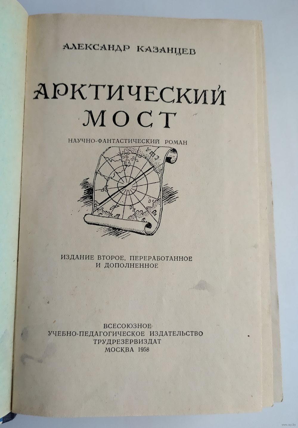 Казанцев Александр. Арктический мост: Научно-фантастический роман. 2-е издание, переработанное дополненное. Серия: Фантастика. Приключения. (Паутинка). Москва: Всесоюзное учебно-педагогическое издательство Трудрезервиздат, 1958г., 776 с. Твёрдый переплёт. Уменьшенный формат.