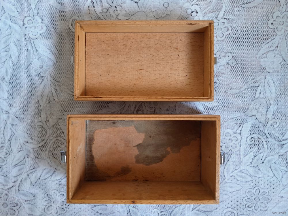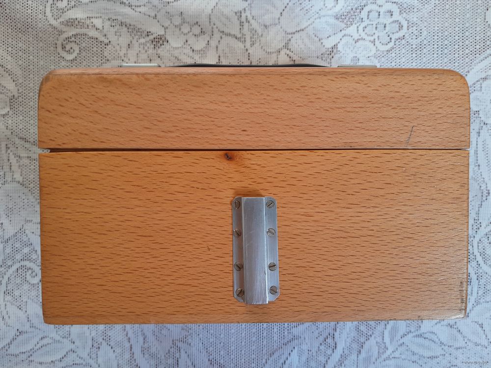 Кейс деревянный, СССР, начало 1970-х. Размеры: 21×12,5×13 см.