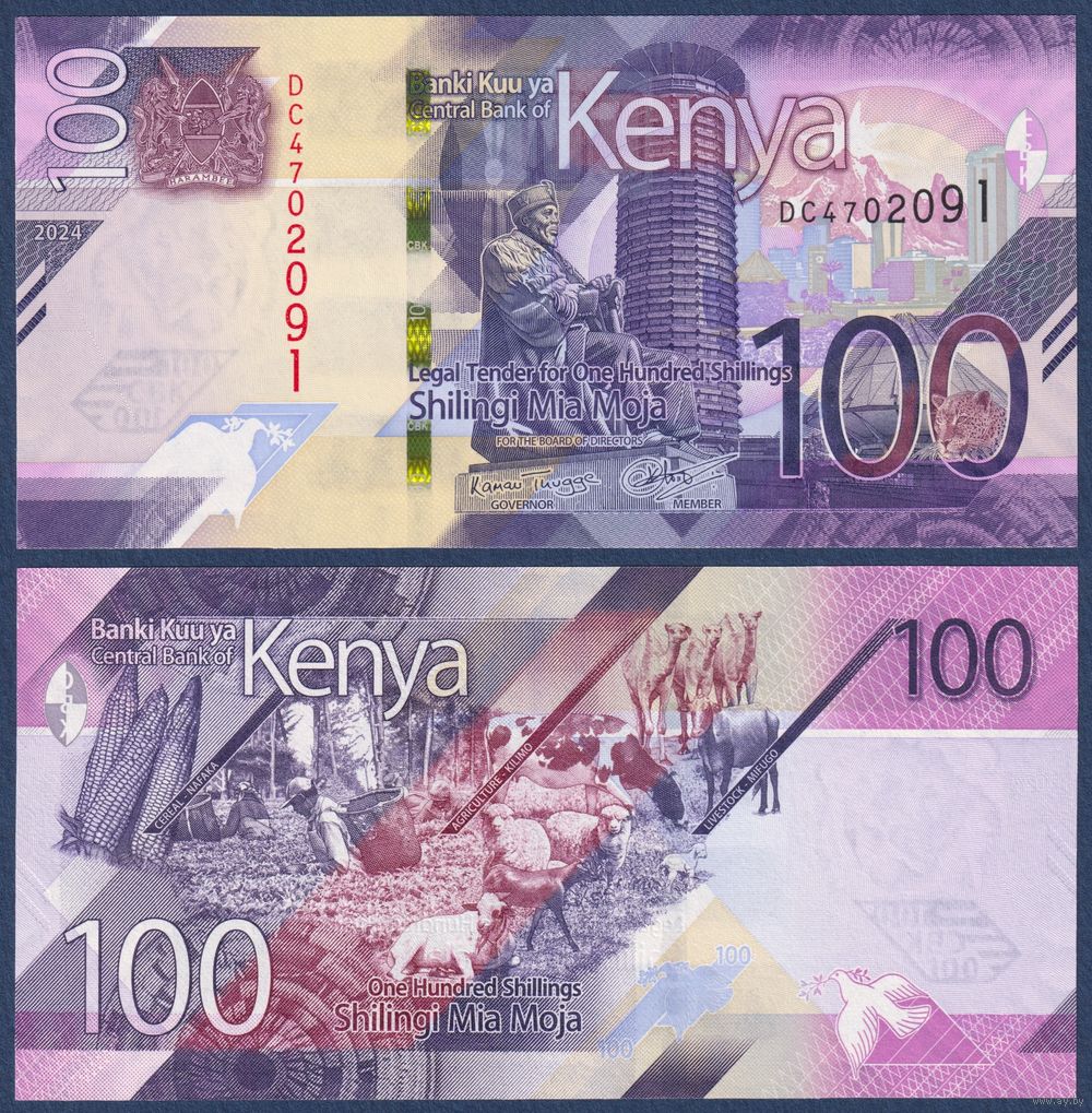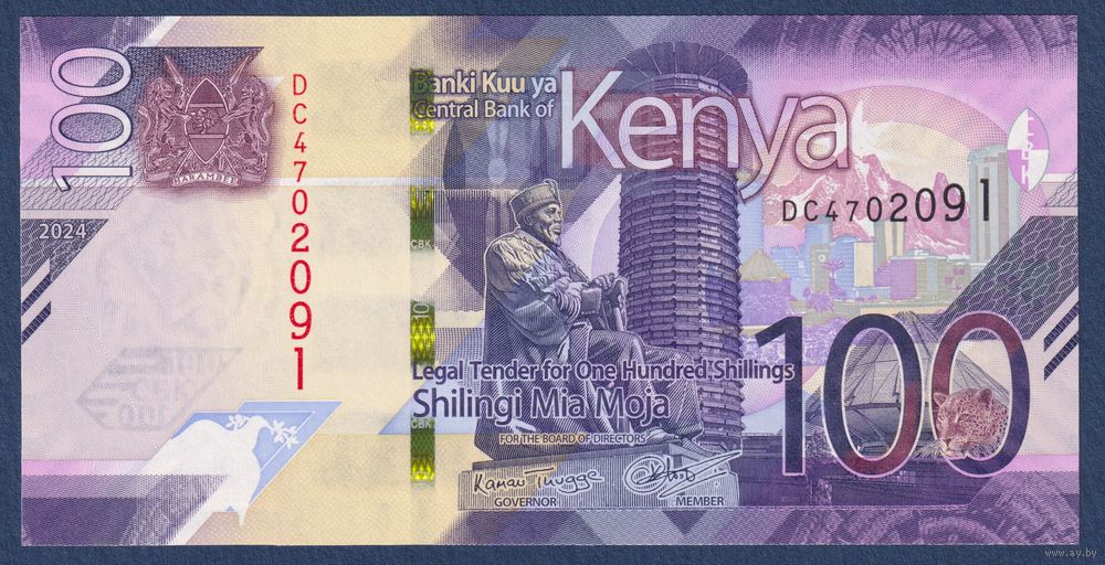 Кения, 100 шиллингов 2024 г., P-W53 (DC, статуя отца нации Джомо Кениата в Найроби), UNC