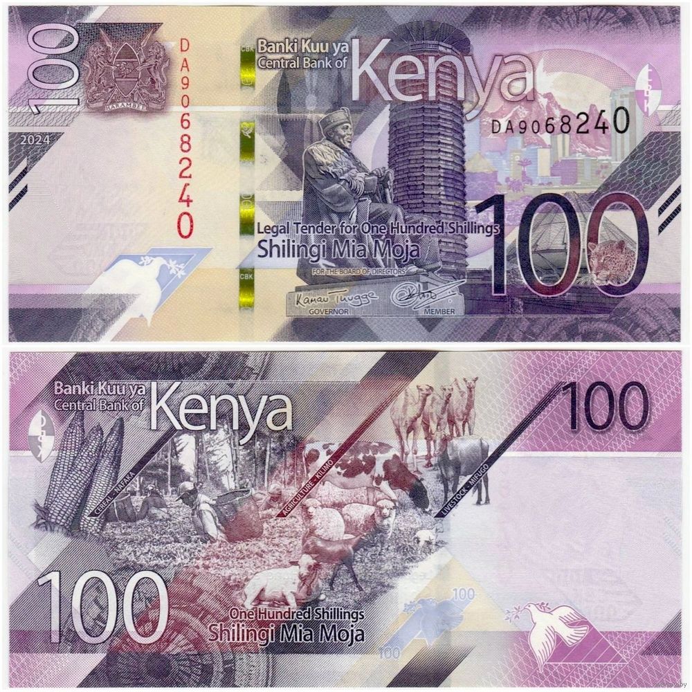 Кения 100 шиллингов образца 2024 года UNC pw53