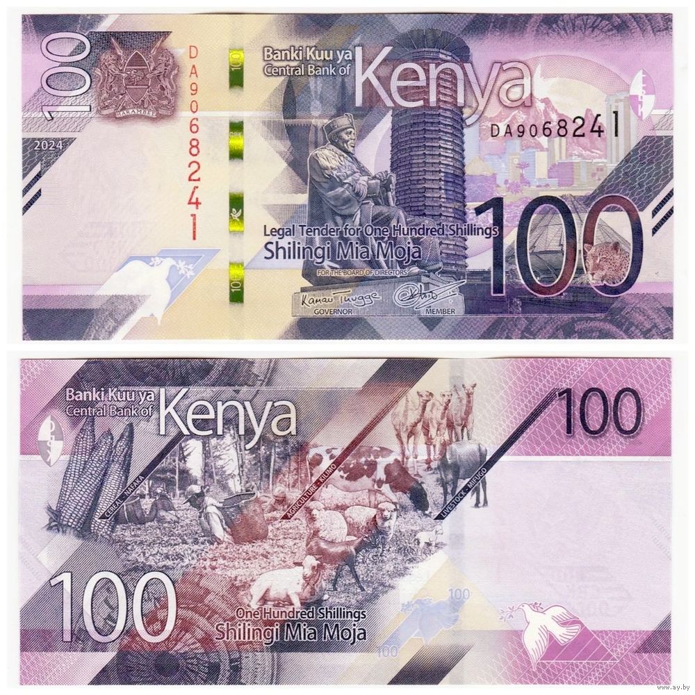 Кения 100 шиллингов образца 2024 года UNC pw53 серия DC