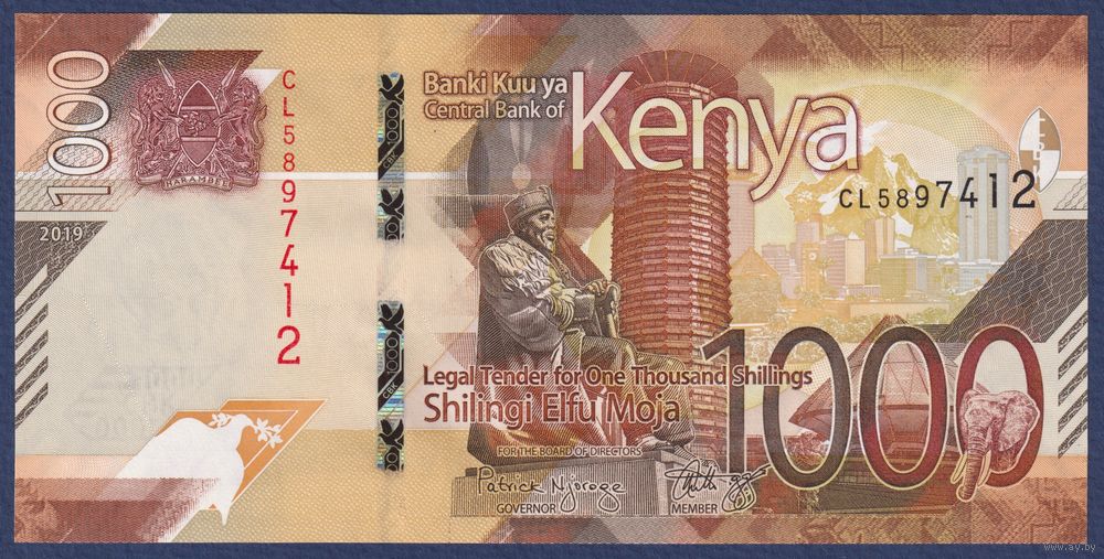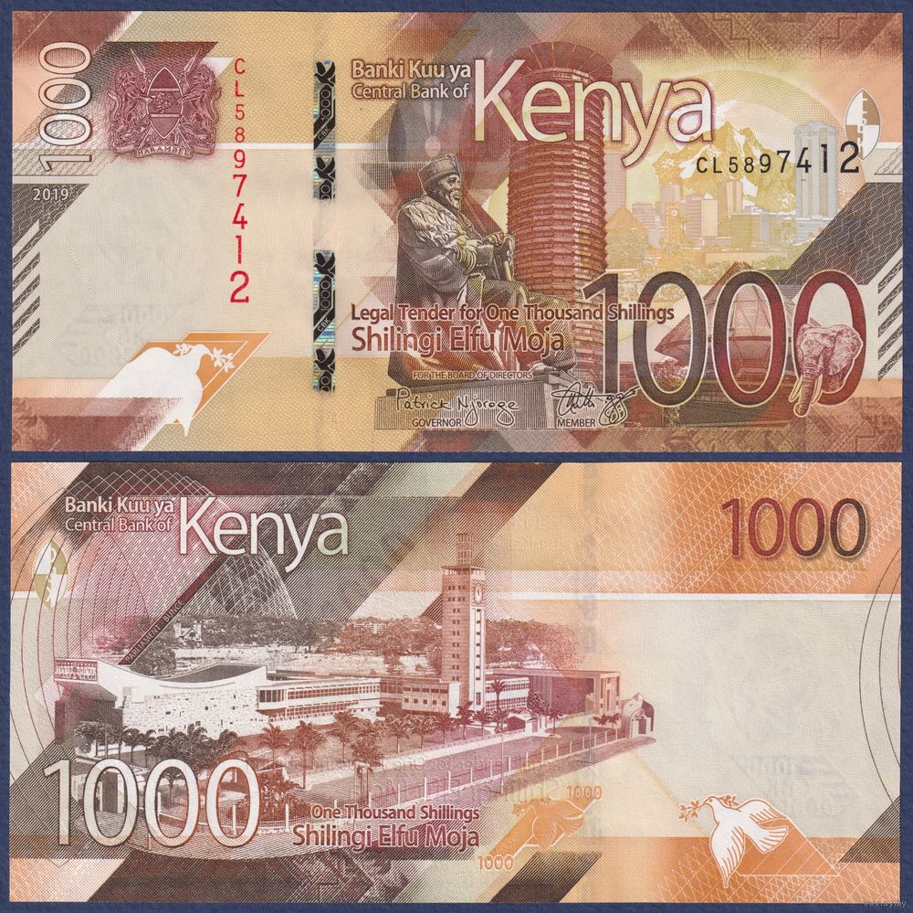 Кения, 1000 шиллингов 2019 г., P-W56 (CL, статуя отца нации Джомо Кениата в Найроби), UNC