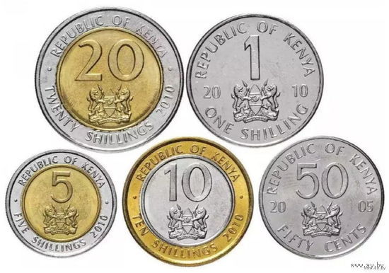Кения 50 центов, 1, 5, 10, 20 шиллингов, UNC. Герб. Сторгуй за свою цену, предложи обмен! Y320