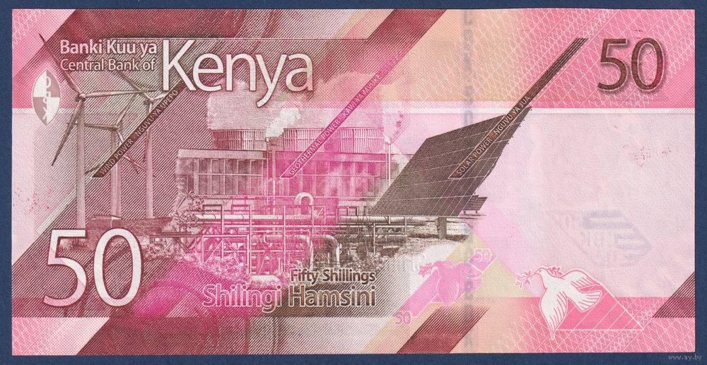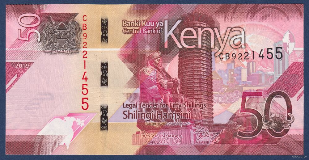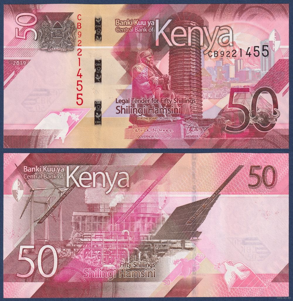 Кения, 50 шиллингов 2019 г., P-W52 (CB, статуя отца нации Джомо Кениата в Найроби), UNC