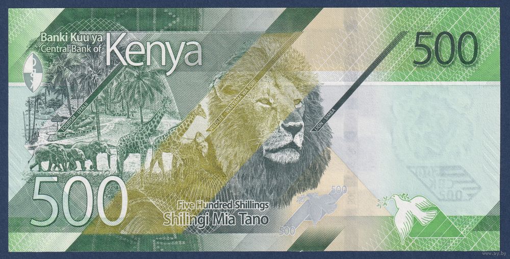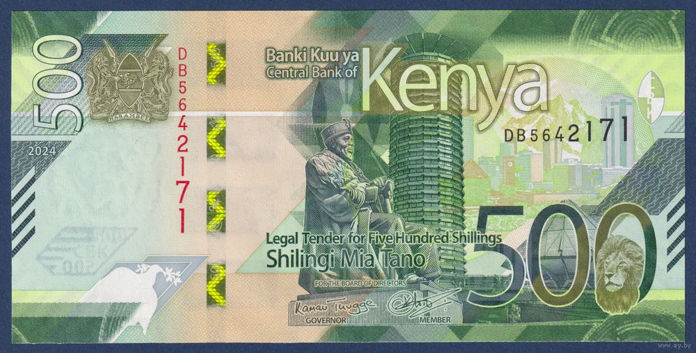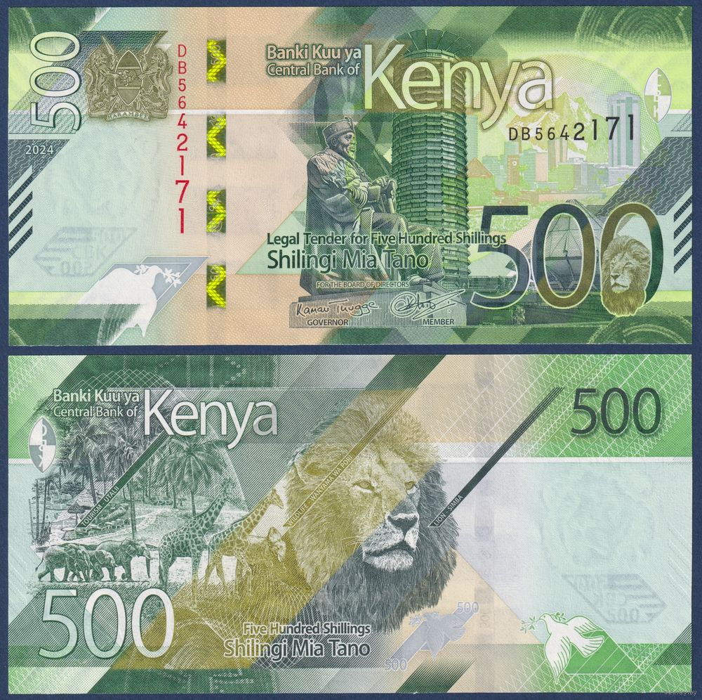 Кения, 500 шиллингов 2024 г., P-W55 (DB, статуя отца нации Джомо Кениата в Найроби, лев), UNC