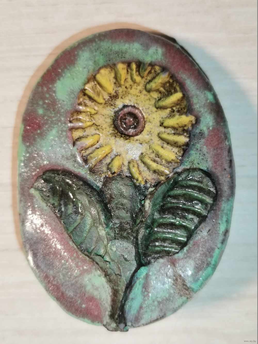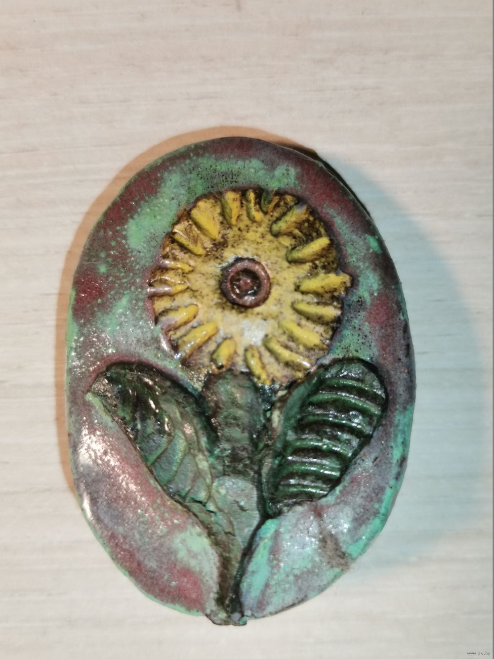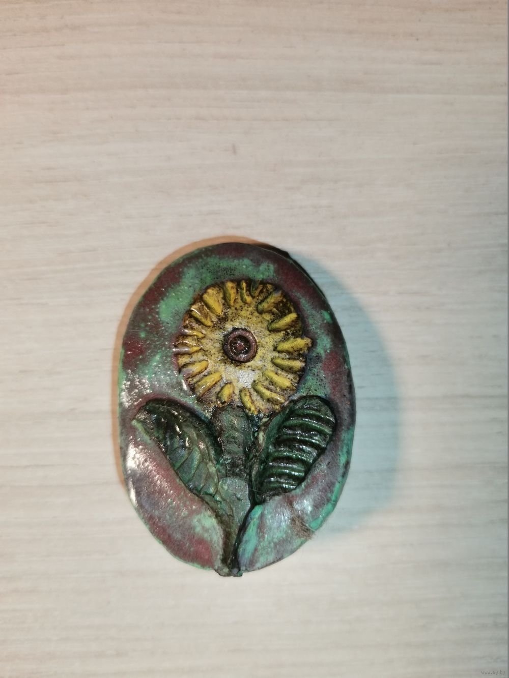 | Есть нюанс, заколка размещена не в верхней, а нижней части брошки. | |