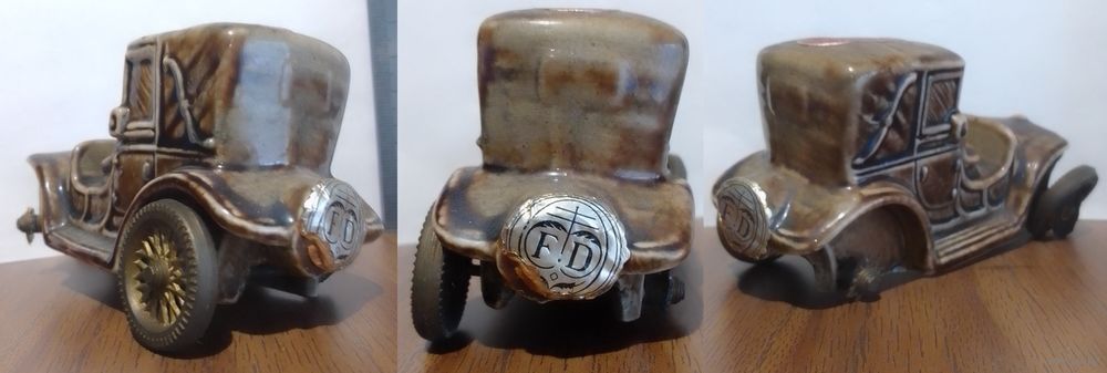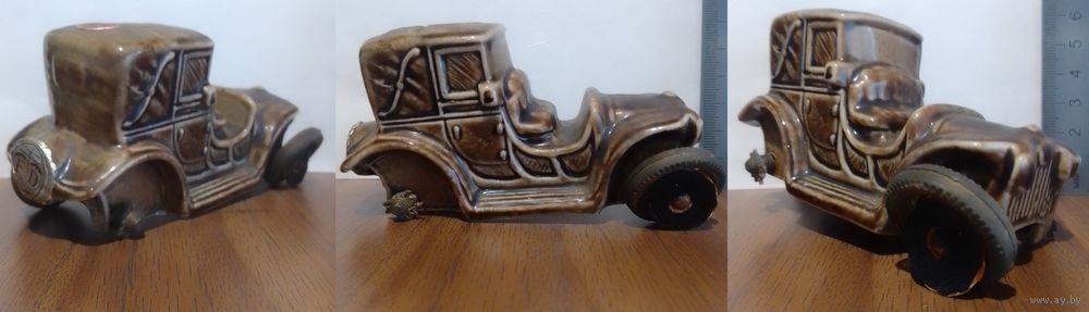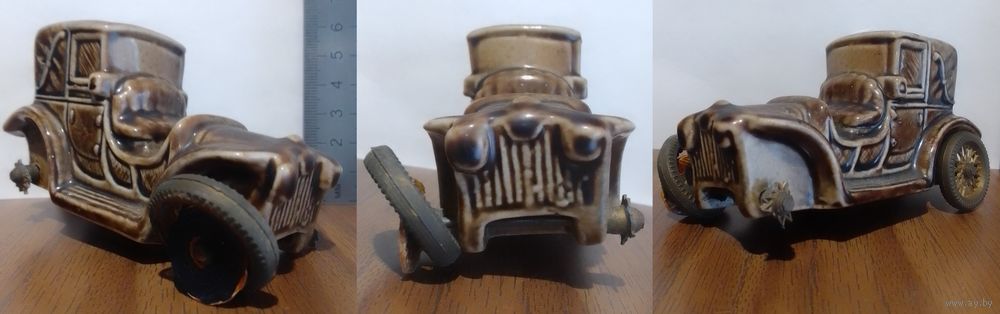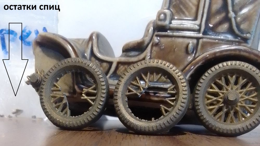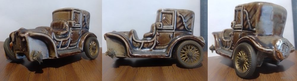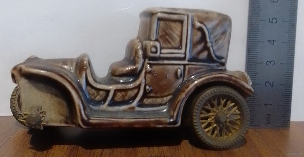 Керамическая бутылочка 'машина' ликер DRIOLI (выпарка 5-20%) поломаны спицы 3 колес, оси крутятся (под реставрацию)