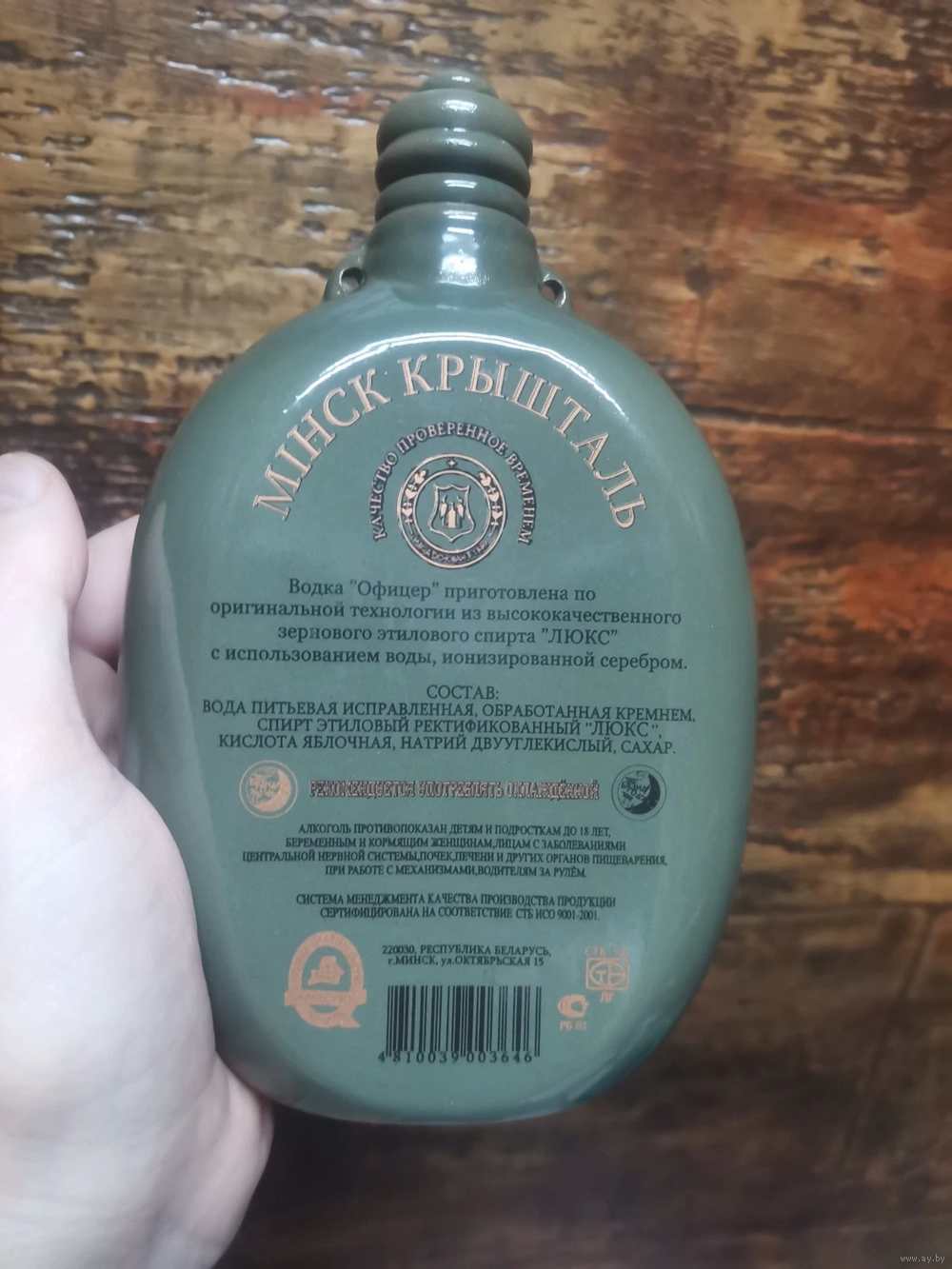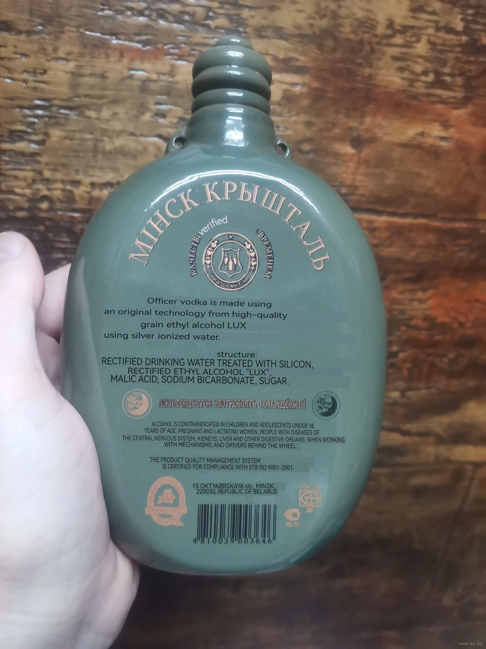 Водка - надпись - ОФИЦЕР. Республика Беларусь. РУП "МИНСККРИСТАЛЛ", концерн "БЕЛЬГОСПИШЧЕПРОМ". Объём 0,5 литра.