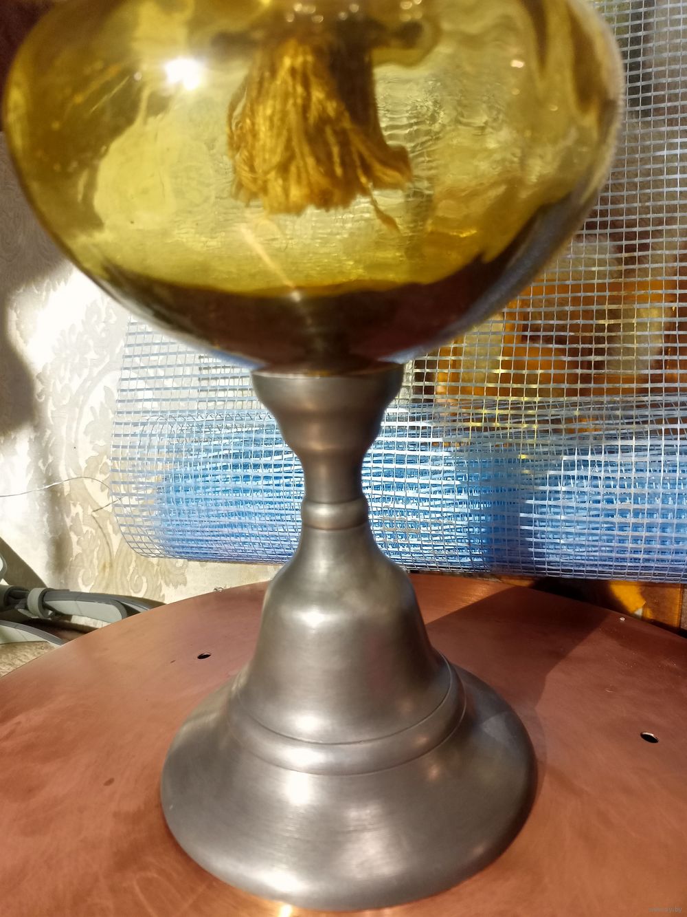 Основание лампы выполнено из 95% Etain (олово), имеется клеймо на основании. Ламповое стекло типа "Космос".