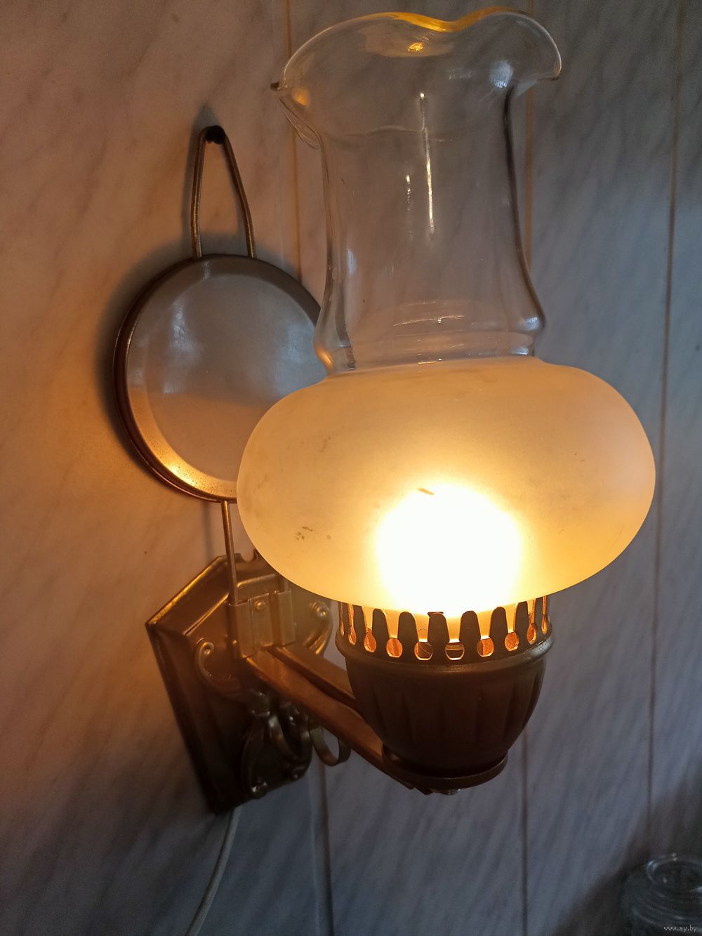 Комбинированная лампа работает на керосине и от сети. Предоставлены образцы с разными вариантами плафонов. Легкая замена керосиновой горелки на электропатрон.
