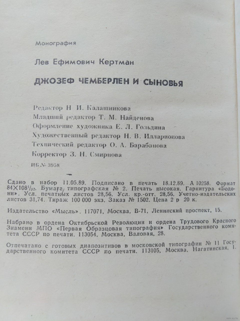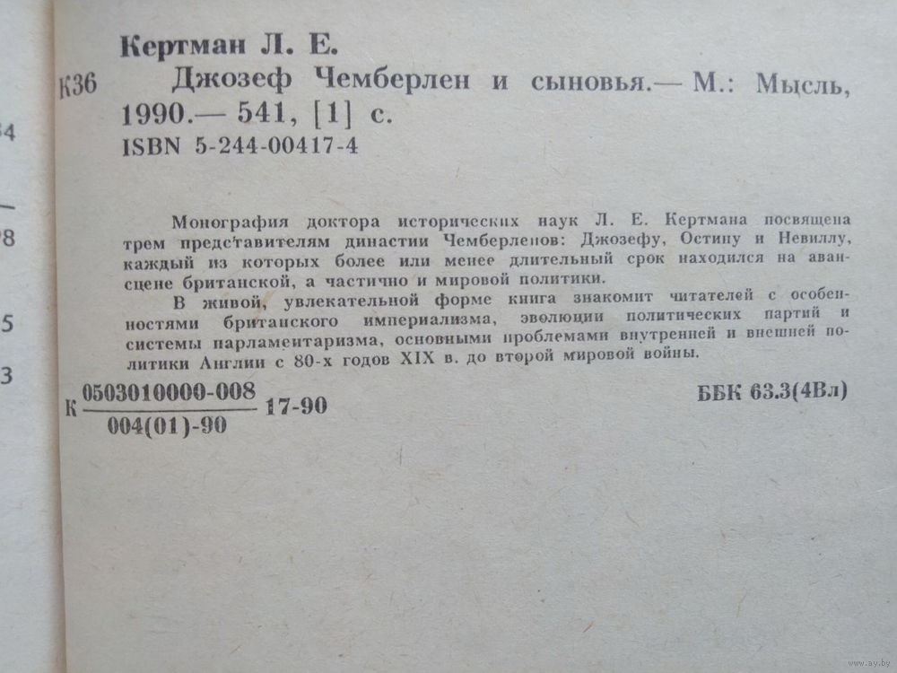 29. Монография доктора исторических наук Л. Е. Кертмана посвящена трем представителям династии Чемберленов: Джозефу, Остину и Невиллу, каждый из которых более или менее длительный срок находился на авансцене британской, а частично и мировой политики. В живой, увлекательной форме книга знакомит читателей с особенностями британского империализма, эволюции политических партий и системы парламентаризма, основными проблемами внутренней и внешней политики Англии с 80-х годов XIX века до второй мировой войны.