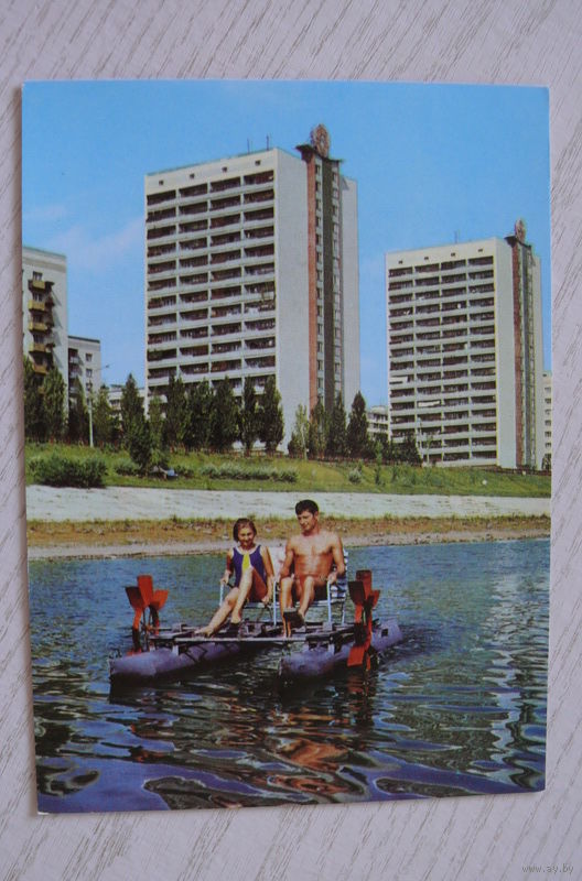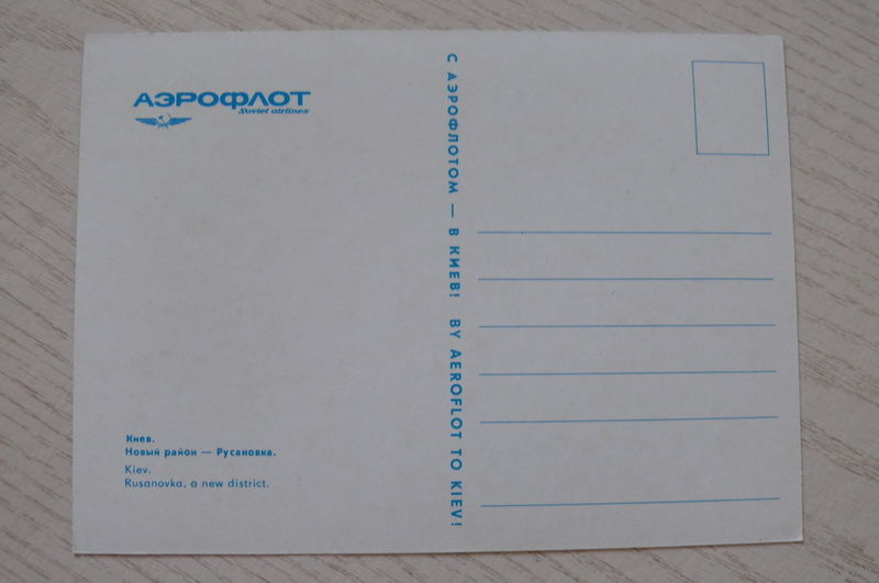 Киев. Новый район -- Русановка; чистая, "С Аэрофлотом -- в Киев!" рекламная открытка (катамаран).