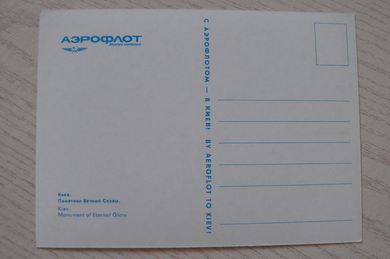 Киев. Памятник Вечной Славы; чистая, "С Аэрофлотом -- в Киев!" рекламная открытка.