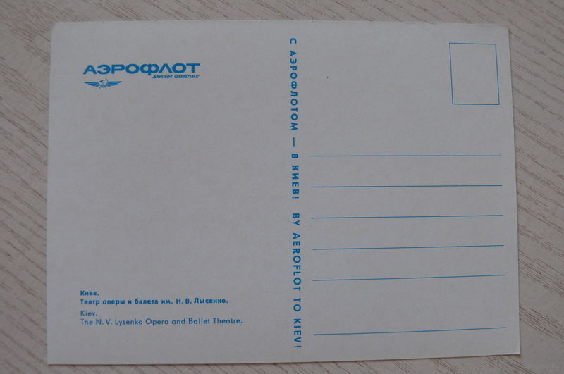 Киев. Театр оперы и балета; чистая, "С Аэрофлотом -- в Киев!" рекламная открытка.