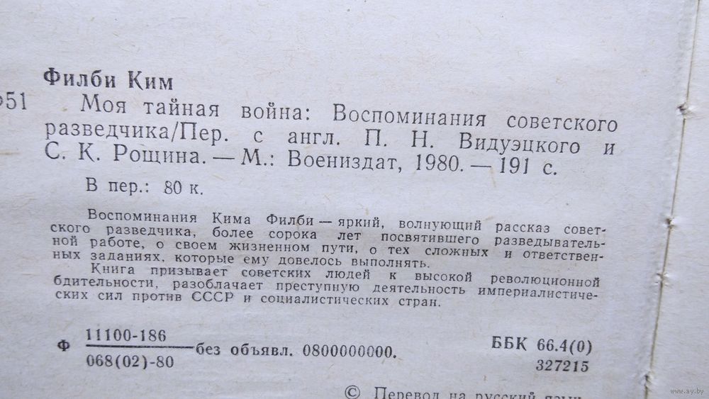 Воспоминания Кима Филби — яркий, волнующий рассказ советского разведчика, более сорока лет посвятившего разведывательной работе, о своем жизненном пути, о тех сложных и ответственных заданиях, которые ему довелось выполнять. Книга призывает советских людей к высокой революционной бдительности, разоблачает преступную деятельность империалистических сил против СССР и социалистических стран.