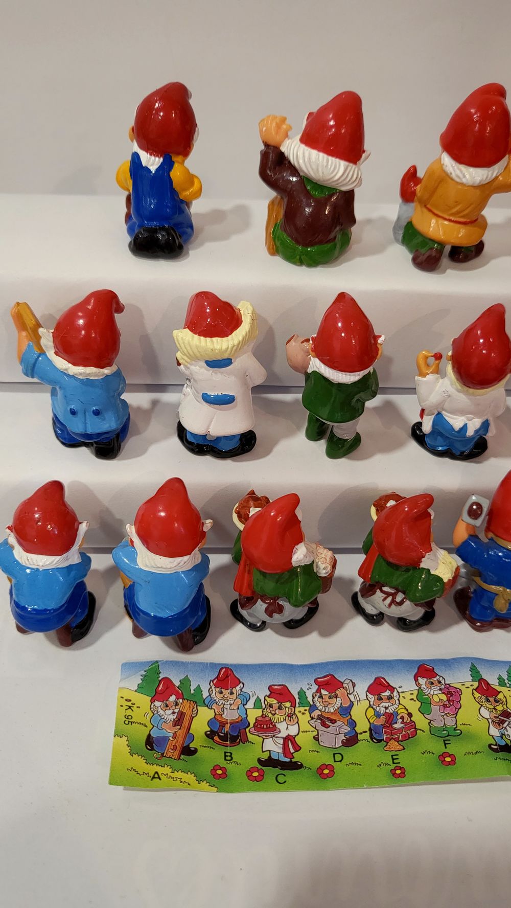 Совершенно полная Коллекция Гномы мастеровые Германия 1992 год 10 штук ПЛЮС 4 ВАРИАНТНЫЕ фигурки к серии! Оригинальный вкладыш на 8 фигурок.