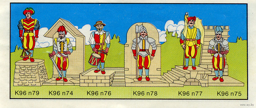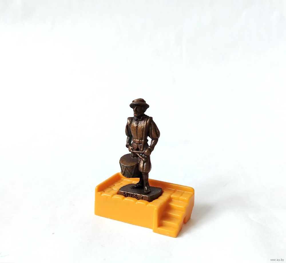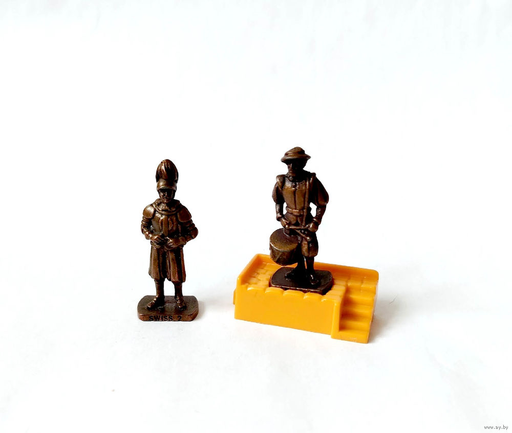 Kinder. Киндер сюрприз. Солдатики Швейцарская гвардия, 1996 год, металл. Командир, Барабанщик и лестница.