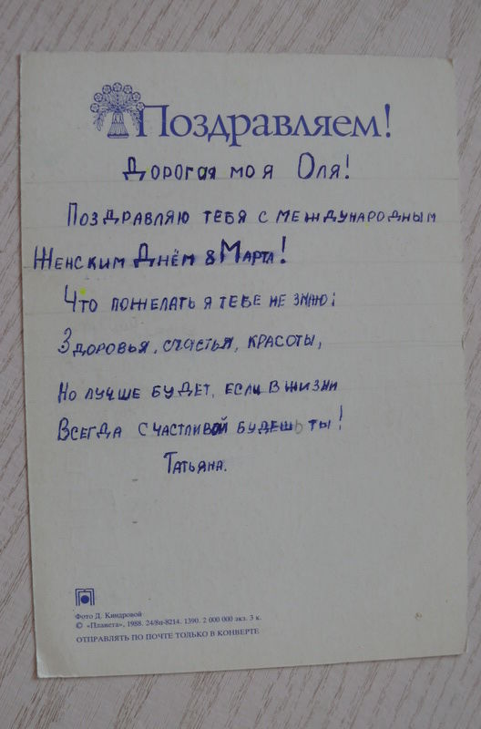 Киндрова Д., Поздравляем! 1988, подписана (ромашки).