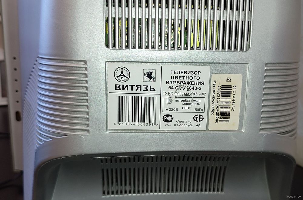 Кинескопный телевизор Витязь 54 CTV 6643-2 белорусского производства. Работает и по сей день без нареканий: смотрятся фильмы на дисках и кассетах, Youtube, играются игры на PS3 (правда изображение не везде дотягивает до нужного). Довольно громкий динамик. Беспроблемное подключение портативных теле-приставок, DVD и VHS плееров, нетребовательных игровых приставок. Передняя кнопочная панель рабочая (изредка кнопки могут подзаесть). Есть доки, рабочий пульт. Полная чистка от пыли 24.02.25г. Самовывоз из п.Чисть, Молодечненского района, Минской области