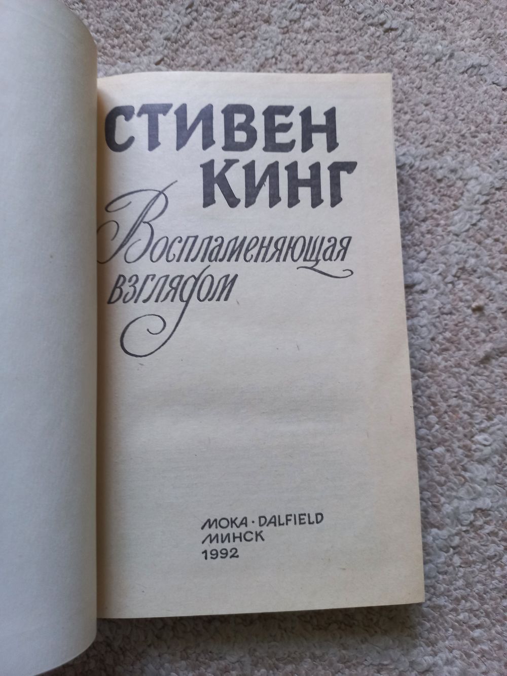 Кинг Стивен. Воспламеняющая взглядом: Роман. Серия: Магия ужаса Минск Мока-Dalfield 1992г. 352с. твердый переплет, обычный формат.