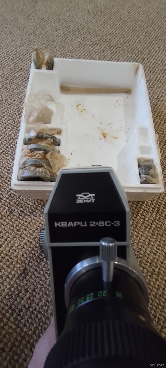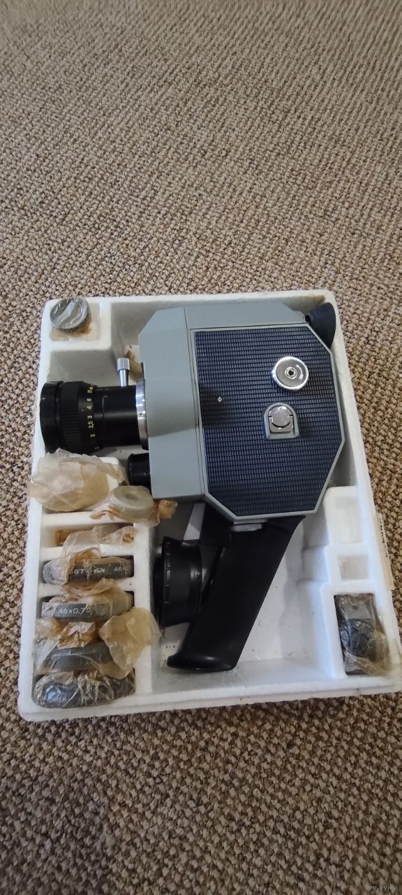 Кинокамера КВАРЦ 2х8 С-3 СССР НОВАЯ. Также есть около 40 фотоаппаратов. Как новых так и б/у. Большое количество объективов.