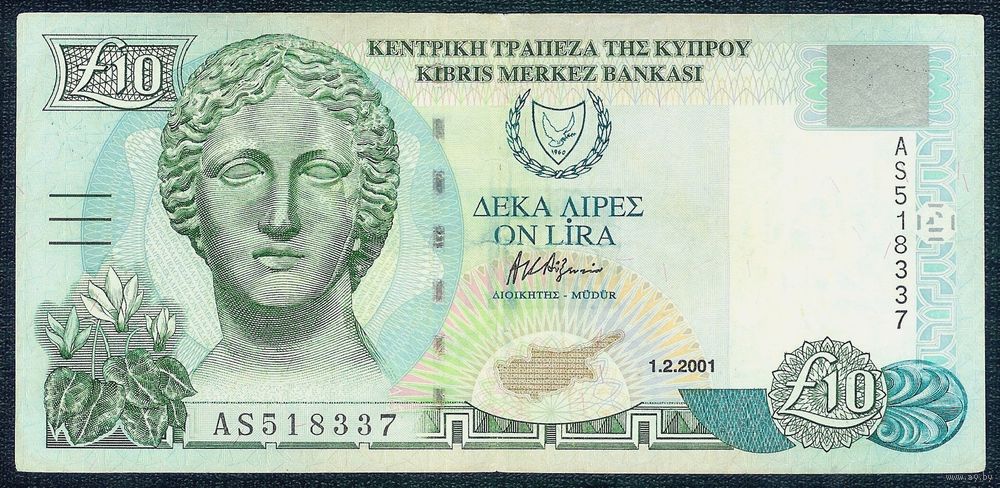 Кипр 10 лир 2001 год.