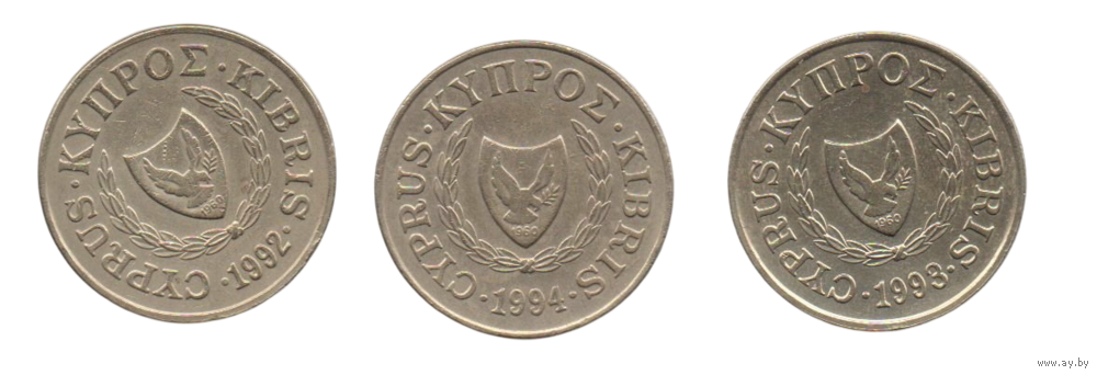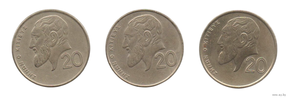 Кипрская Республика ( Кипр ). 20 центов 1991, 1992, 1993, 1994. Философ Зенон Китийский. Цена за одну монету.