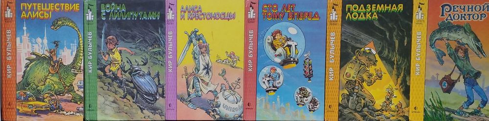 Цена за 1 том. Большой формат. 320 стр. Иллюстрации Е. Мигунова. Фантастические повести и рассказы о маленькой девочке Алисе, которой довелось участвовать в необычайных путешествиях, приключениях и происшествиях, случившихся в XXI веке. По книге "Сто лет тому вперед" был снят замечательный детский фильм про "Прекрасное далеко" - культовое кино "Гостьи из будущего". По сюжету мальчик Коля, попадает в бушующее и становится свидетелем кражи милофона - прибора-переводчика с языка зверей и птиц. Коля мешает космическим пиратам осуществить свой замысел, за что они начинают его преследовать, но Коля успевает вернуться в свое время, за ним правда гоняются и пираты, и Алиса.