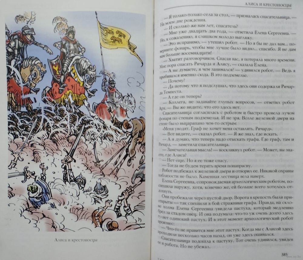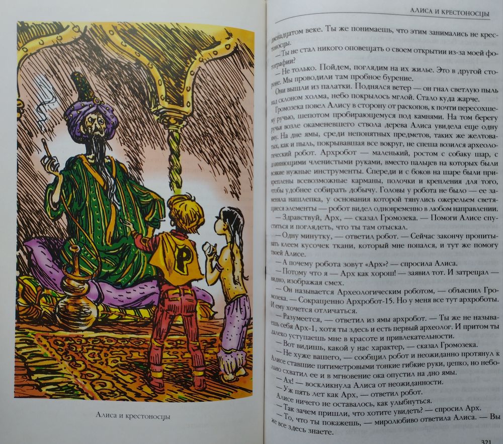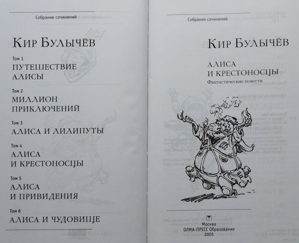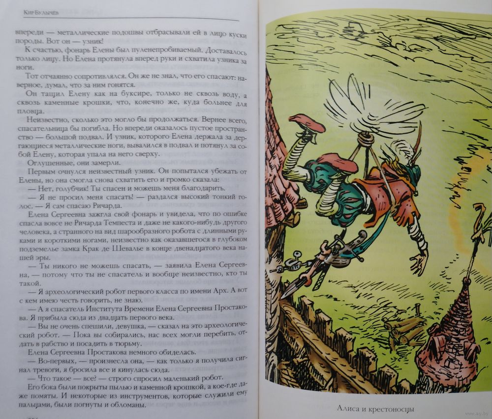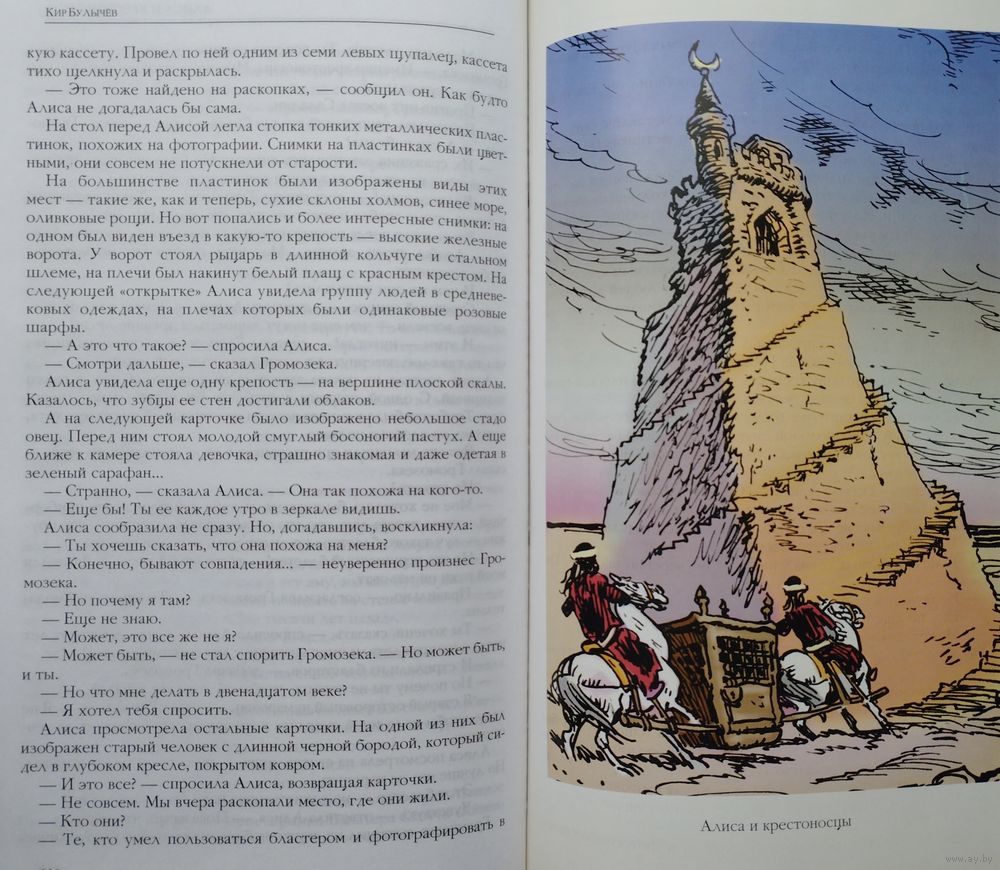 Большой энциклопедический формат. Ляссе. Тираж 3000 экз. 488 стр. Цветные иллюстрации Е. Мигунова. В очередной том вошли четыре фантастических повести Кира Булычёва об удивительной девочке из будущего Алисе Селезневой: Гай-до, Город без памяти, Алиса и крестоносцы, Опасные сказки.