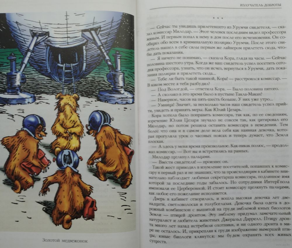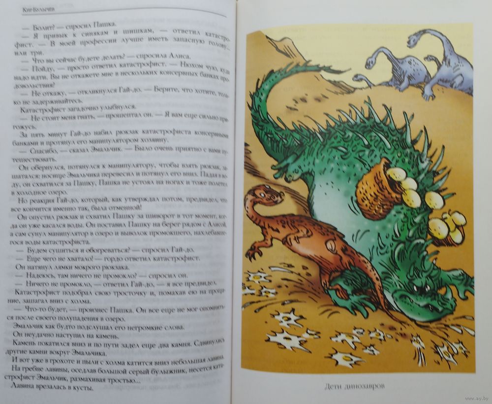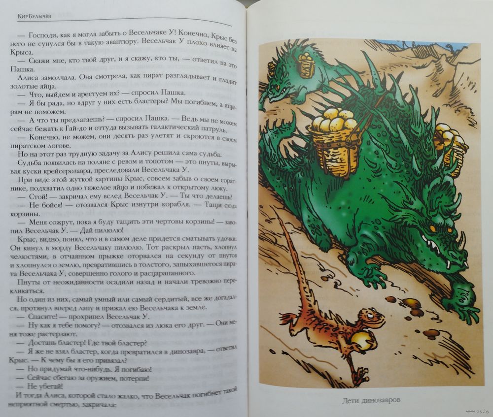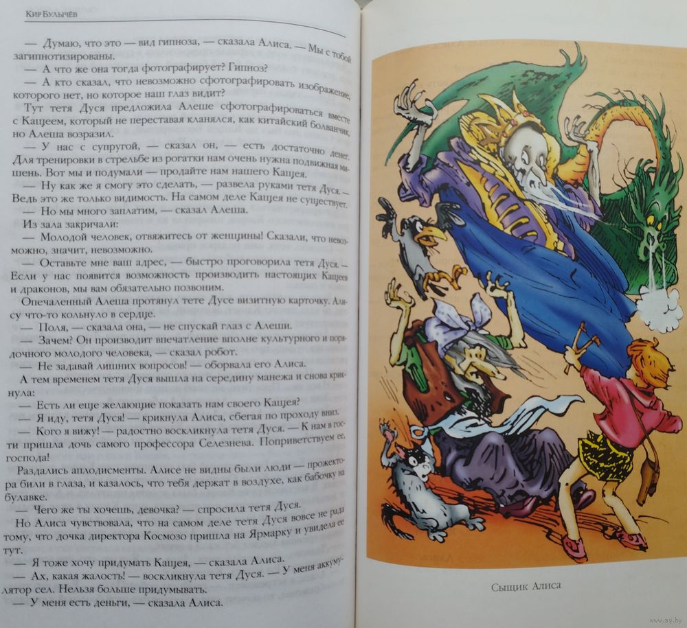 Большой энциклопедический формат. Ляссе. Тираж 5000 экз. 448 стр. Цветные иллюстрации Е. Мигунова. В очередной том вошли четыре фантастических повести Кира Булычёва об удивительной девочке из будущего Алисе Селезневой: Золотой медвежонок, Излучатель доброты, Сыщик Алиса, Дети динозавров, Гость из кувшина, Привидений не бывает.