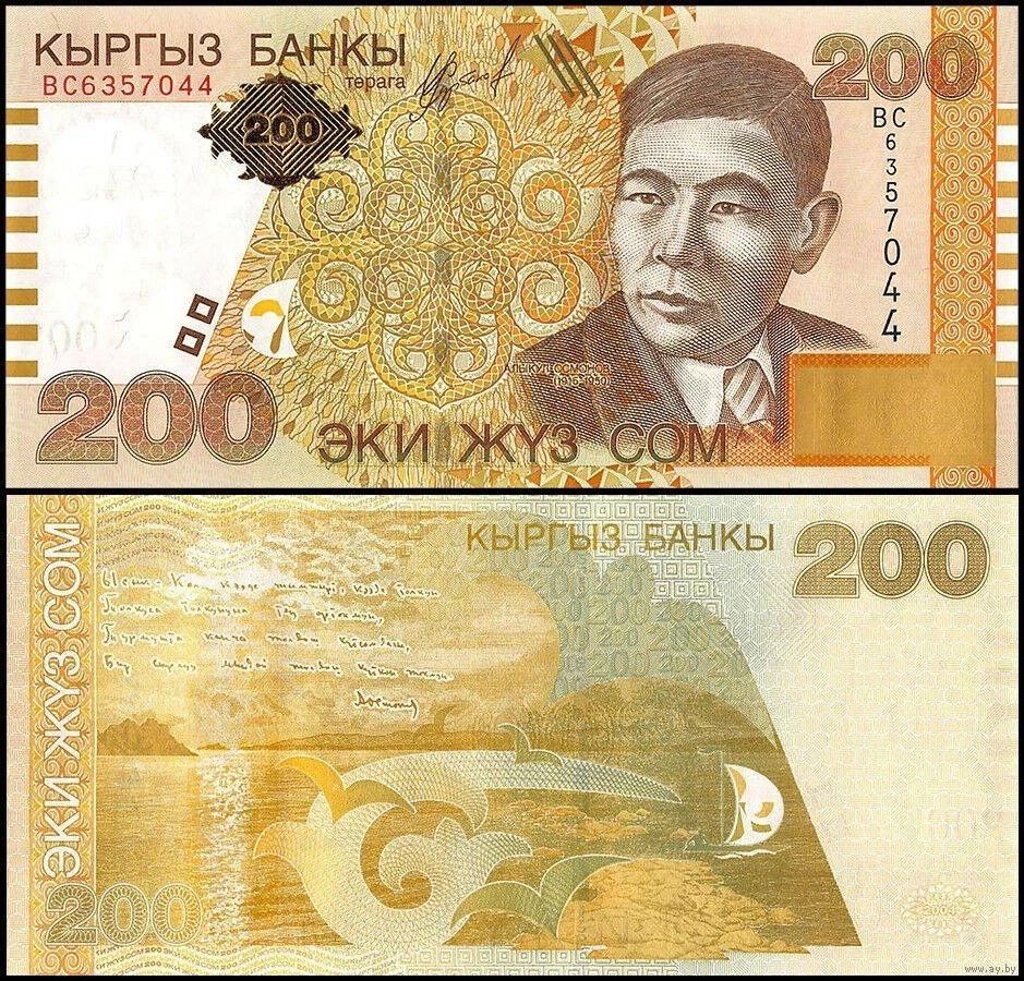 Киргизия 200 сом образца 2004 года UNC p22 серия BC