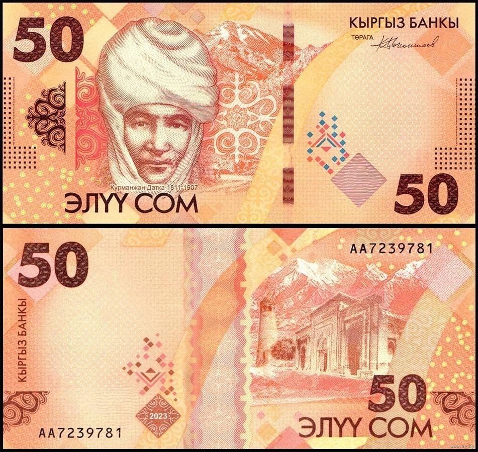 Киргизия 50 сом образца 2023 года UNC серия АА