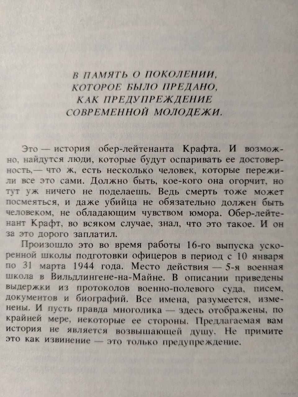 В основу сюжета романа западногерманского писателя Г.Кирста положена история обер-лейтенанта Крафта, работавшего в школе подготовки офицеров в 1944 году. Книга основана на реальных событиях.