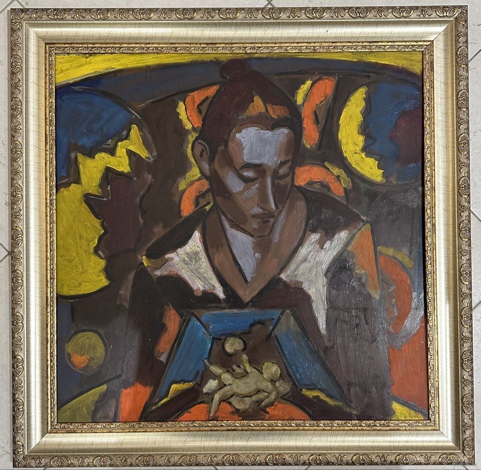 Кищенко А.М;62/63см. "Рождение", 1991г. ДВП, масло. Размер 62х63 см.